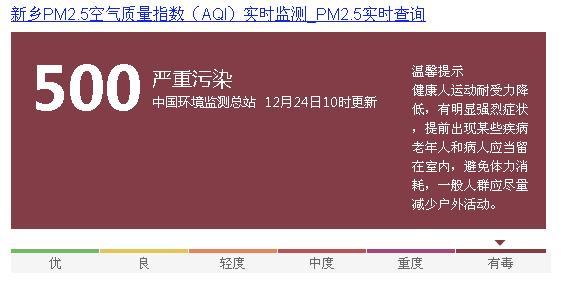 從昨日起,新鄉地區進入嚴重污染天氣,空氣污染程度遠超500值,屬于重度污染。且新鄉市重污染天氣預警應急響應升級為一級(紅色)預警響應,市區車輛限行,幼兒園、中小學今天停課。鑒于近期空氣質量過差,中信化工在此提醒所有員工謹慎出行。